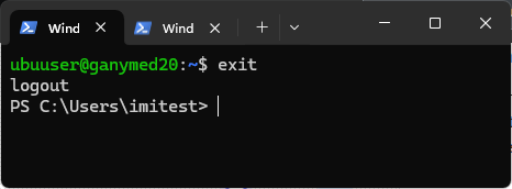 Sie werden dann ausgeloggt, und wsl fährt Ihre Linux Installation nach kurzer Zeit automatisch herunter: